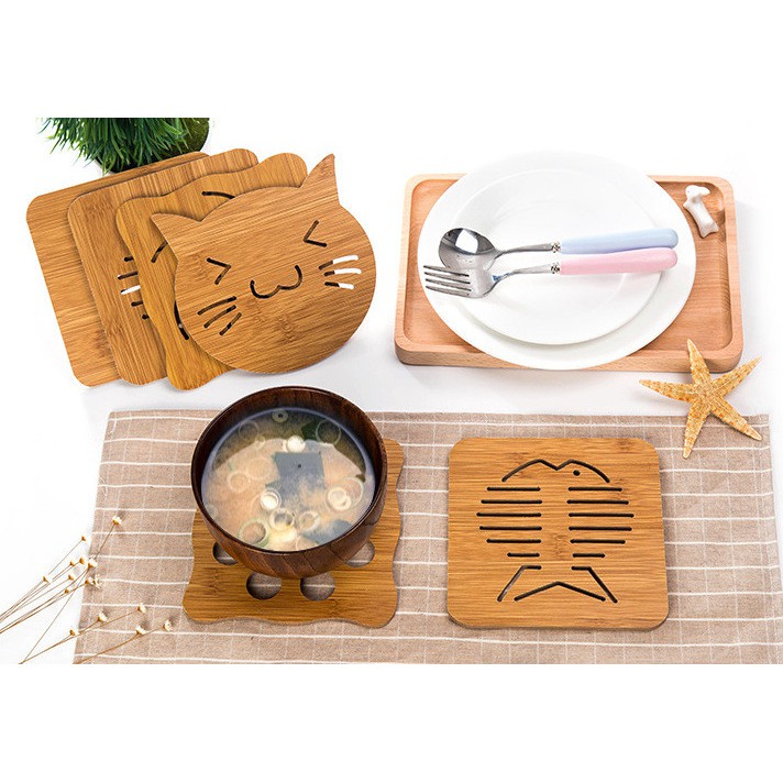 Nhà cửa & Đời sống > Bộ đồ bàn ăn > Khay, tấm lót bàn ăn || Miếng lót nồi bằng gỗ nhiều hình ( Đồng giá 20k )Còn hàng