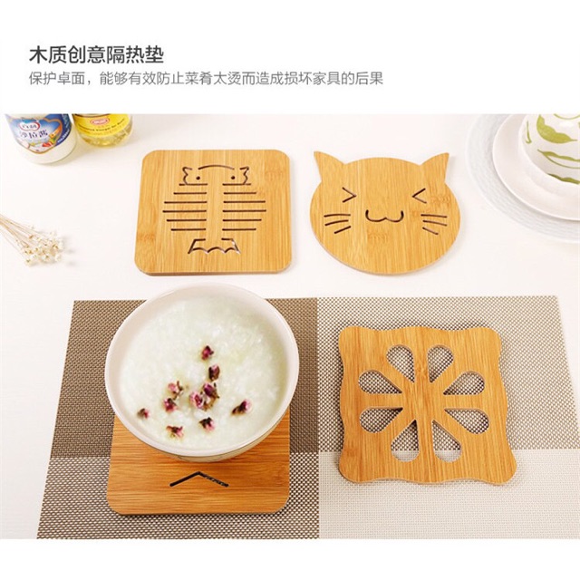 Giới thiệu sản phẩm Miếng lót nồi bằng gỗ nhiều hìnhSản phẩm dùng để lót xoong, nồi, chảo, bát đĩa, cốc chén … được làm bằng gỗ giúp cách nhiệt giữa xoong, nồi và mặt bàn hay tủ đựng thức ăn hiệu quả.