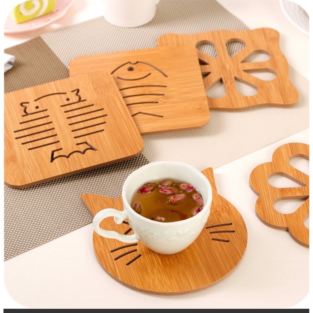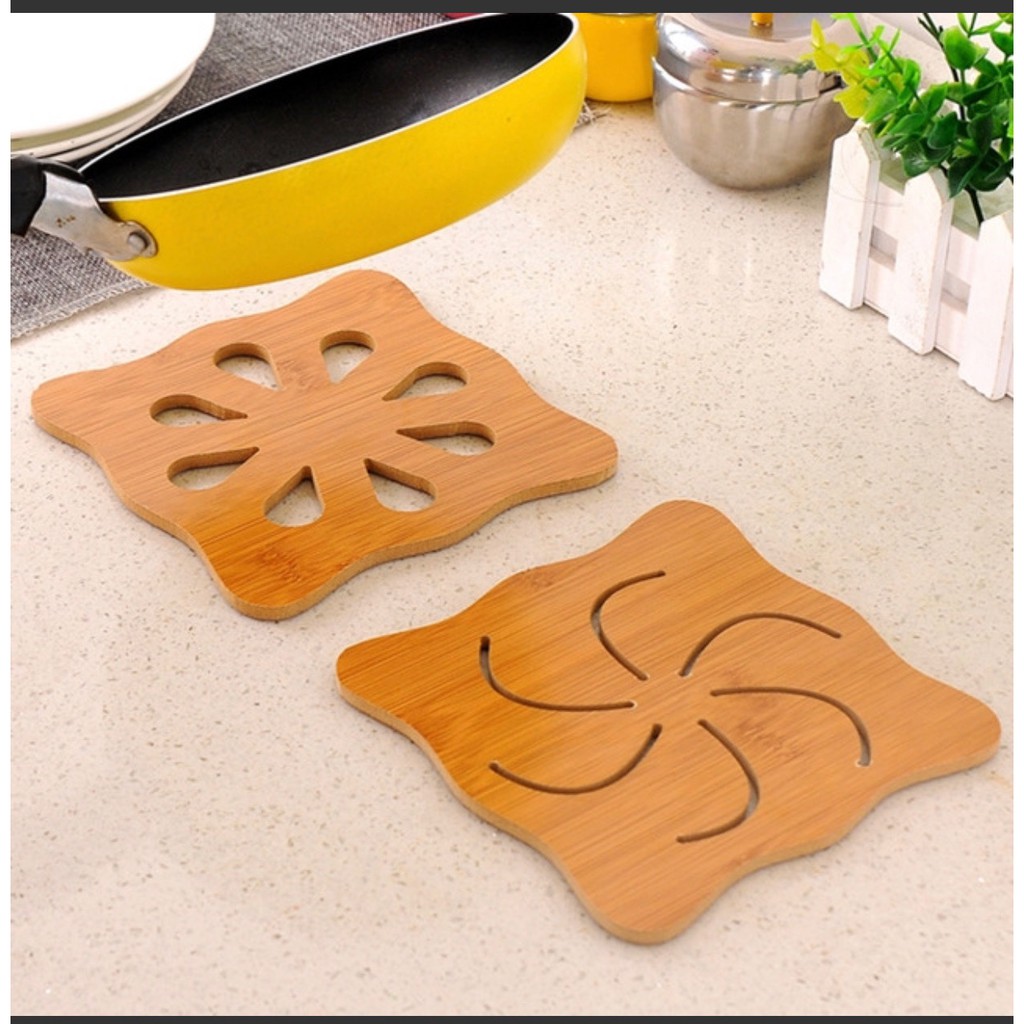 Miếng lót nồi, bát, cốc, chén bằng gỗ:- Đế lót nồi bằng gỗ được gia công hoàn toàn bằng chất liệu gỗ tre gọn nhẹ, cứng cáp.