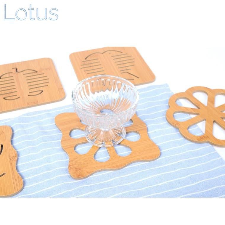 Miếng lót nồi, bát, cốc, chén bằng gỗ:- Đế lót nồi bằng gỗ được gia công hoàn toàn bằng chất liệu gỗ tre gọn nhẹ, cứng cáp.