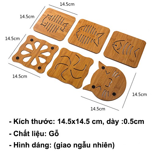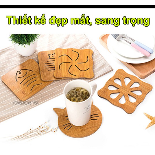 Miếng lót nồi bằng gỗ tre chịu nhiệt tốt - Tấm lót nồi gỗ nhiều hình ngộ nghĩnh