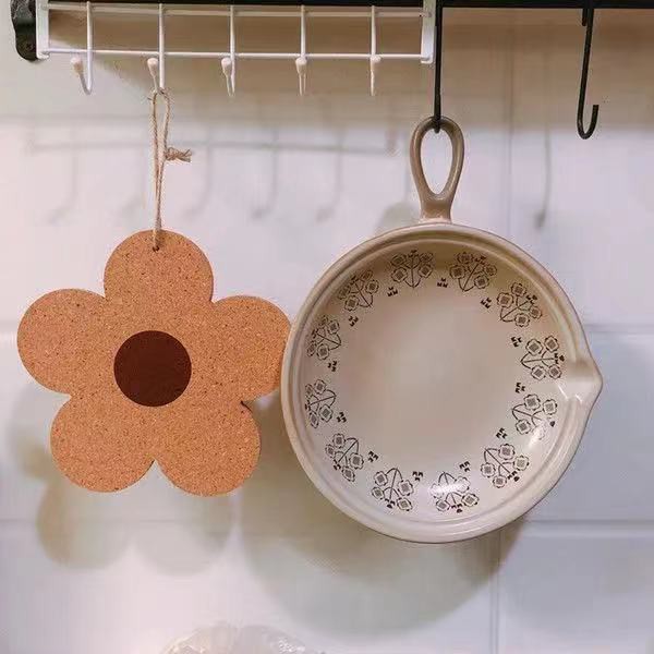 Miếng lót nồi gỗ ép cách nhiệt hình bông hoa loại dày size 10cmxH1cm-Miếng Lót Nồi Cách Nhiệt Đẹp Phong CáchKiểu dáng: Hình bông hoa, có móc treo