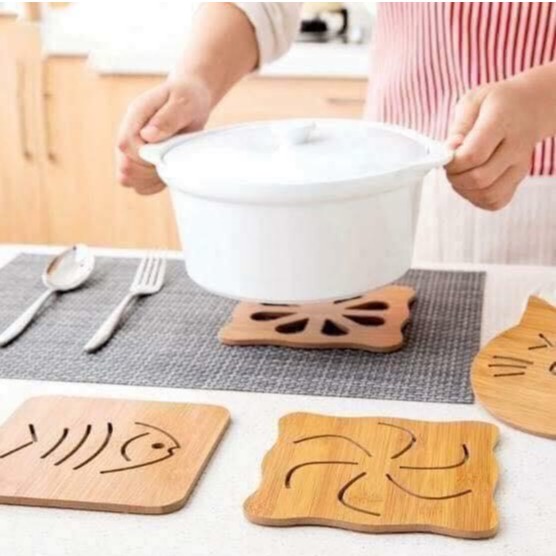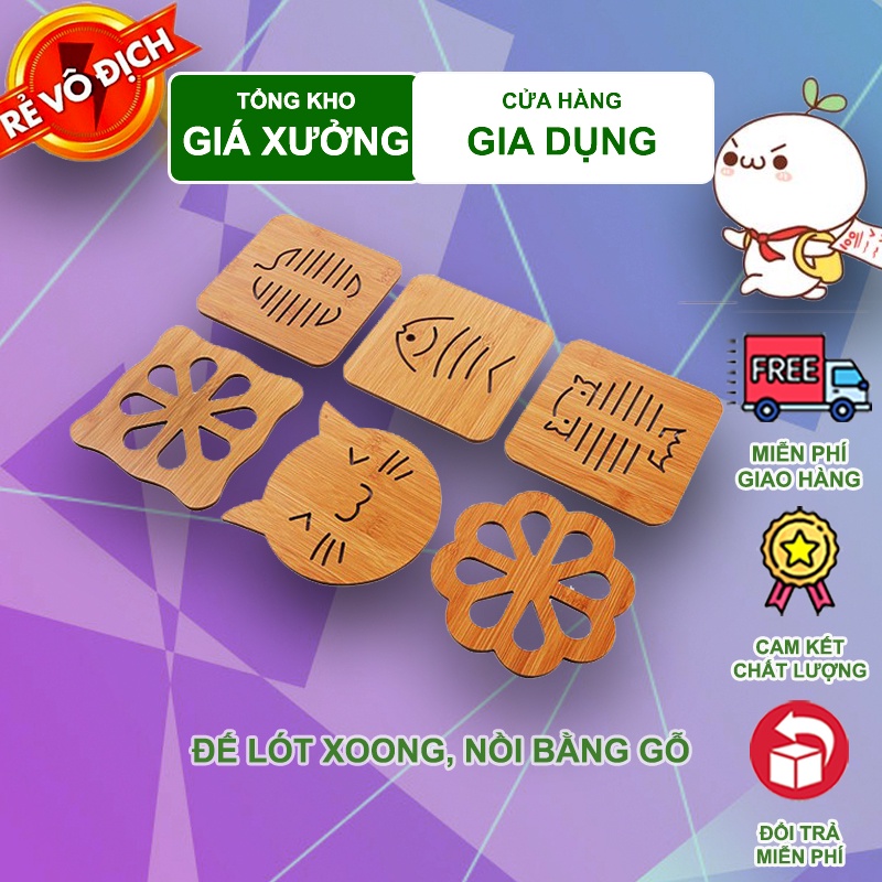 Đế lót nồi vốn là vật dụng không thể thiếu của các chị em trong gian bếp. Đế lót nồi bằng gỗ tiện dụng bền chắc cho Thời gian sử dụng lâu dài. Bạn có thể dùng rế lót nồi cơm, canh, kho… để không bị bỏng tay khi bưng nồi từ bếp đến bàn ăn.Với kích thước vuông, gọn, được khắc các họa tiết ngộ nghĩnh đẹp mắt, đế lót nồi bằng gỗ cũng là 1 vật dụng trang trí giúp cho bàn ăn của gia đình bạn thêm sinh động và lạ mắt.
