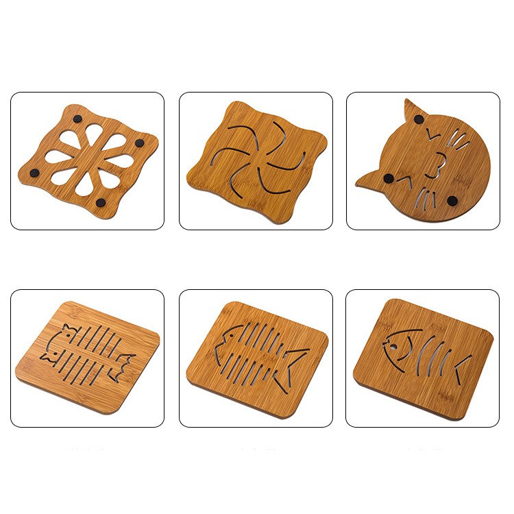 Họa tiết rất đẹp, đáng yêu, xinh xắn nhỏ gọn rất hay nhé. Từ hình con mèo bên trong nóđến các hình khác. Chính vì bằng gỗ nên màu sắc và kiểu của nó thêm phần sang trọng trong căn bếp của bạn vô cùng, nhìn như hàng cao cấp, hàng xịn ấy mà thực ra giá rẻ bèo à, có vài chục ngàn thôi. Màu vân gỗ nên rế lót nồi này mang phong cách cổ điển.