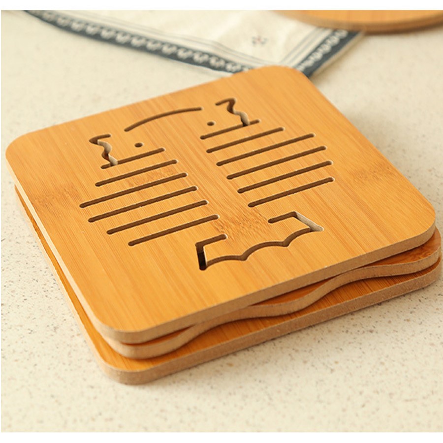 Miếng lót nồi cốc bằng gỗ cách nhiệt hình cute đa năng tiện dụng