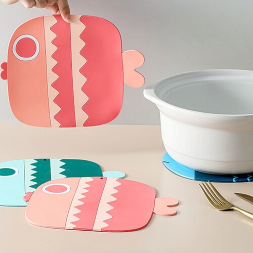 Nhà cửa & Đời sống > Bộ đồ bàn ăn > Khay, tấm lót bàn ăn || Miếng lót nồi cơm silicon hình cá cách nhiệt chống trơn trượt cao cấp có lỗ treo dễ thương màu xanh hồngCòn hàng