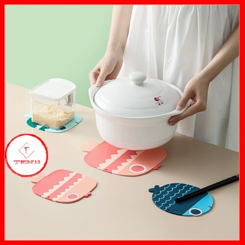 _ Lót nồi hình Cá silicon dùng để lót ly, cốc, bát, đĩa trên bàn ăn hay xoong, nồi trong nhà bếp giúp giữ ly, nồi vững chắc trên bàn.
