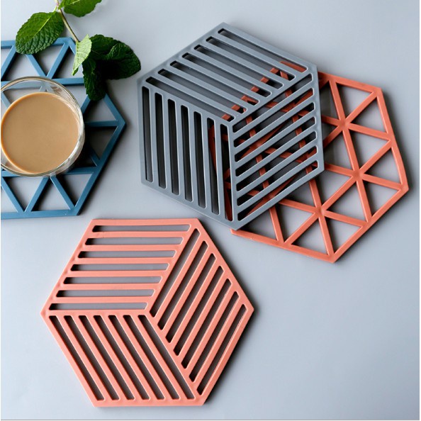 LOẠI HÌNH LỤC GIÁC - Miếng lót nồi, đế lót nồi bát đĩa cách nhiệt chất liệu silicon họa tiết hình học- Chất liệu: Silicon