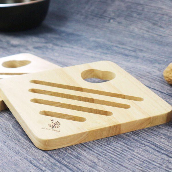 Nhà cửa & Đời sống > Bộ đồ bàn ăn > Khay, tấm lót bàn ăn || Miếng Lót Nồi, Lót Chảo gỗ hình vuông lỗ tim - Gỗ Đức Thành - Gỗ Cao Su Bền Đẹp Sang TrọngCòn hàng