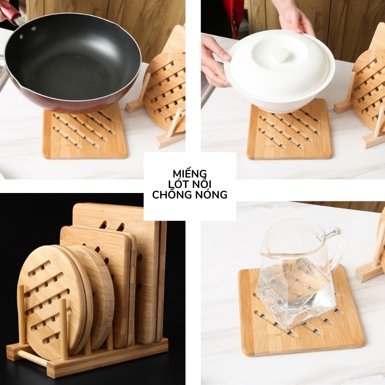 Nhà cửa & Đời sống > Bộ đồ bàn ăn > Khay, tấm lót bàn ăn || [Mã LIFEMALL2503 giảm 15% đơn 99K] Miếng lót nồi gỗ tre BAMBOOO ECO cách nhiệt loại dày nhiều kích thướcCòn hàng