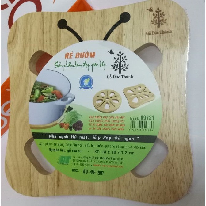 Rế hình bướm được làm từ gỗ cao su, có bề mặt nhẵn mịn, khả năng chịu nhiệt và chịu lực tốt và có độ bền cao. Sản phẩm được thiết kế có các rãnh để tạo sự ma sát giúp các đồ dùng không bị trơn tuột nhằm đảm bảo tối đa sự an toàn cho người sử dụng. Ngoài ra, các rãnh này còn giúp làm thông thoáng nhiệt, khi chúng ta đặt nồi nóng lên trên.Rế hình bướm có thiết kế nhỏ gọn không chiếm nhiều diện tích, sau khi dùng xong có thể treo lên hoặc xếp chồng lên nhau cùng các rế khác. Sử dụng Rế hình bướm, bà nội trợ sẽ hạn chế được đáy nồi đang nóng đặt xuống mặt bếp lâu ngày sẽ hỏng mặt bếp. Ngoài ra, có thể dùng Rế hình bướm để bưng bê thức ăn nóng mà không lo bị bỏng tay.
