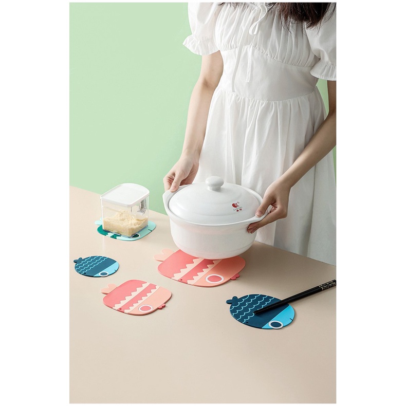 Miếng lót nồi hình cá bằng silicon chịu nhiệt tốt, chống trượt, thiết kế sáng tạo tiện dụng