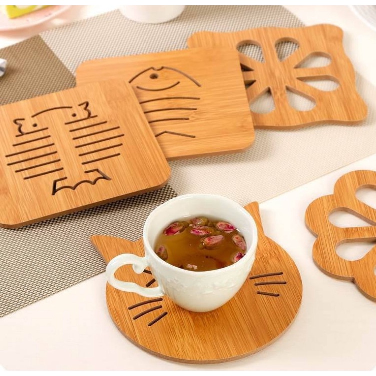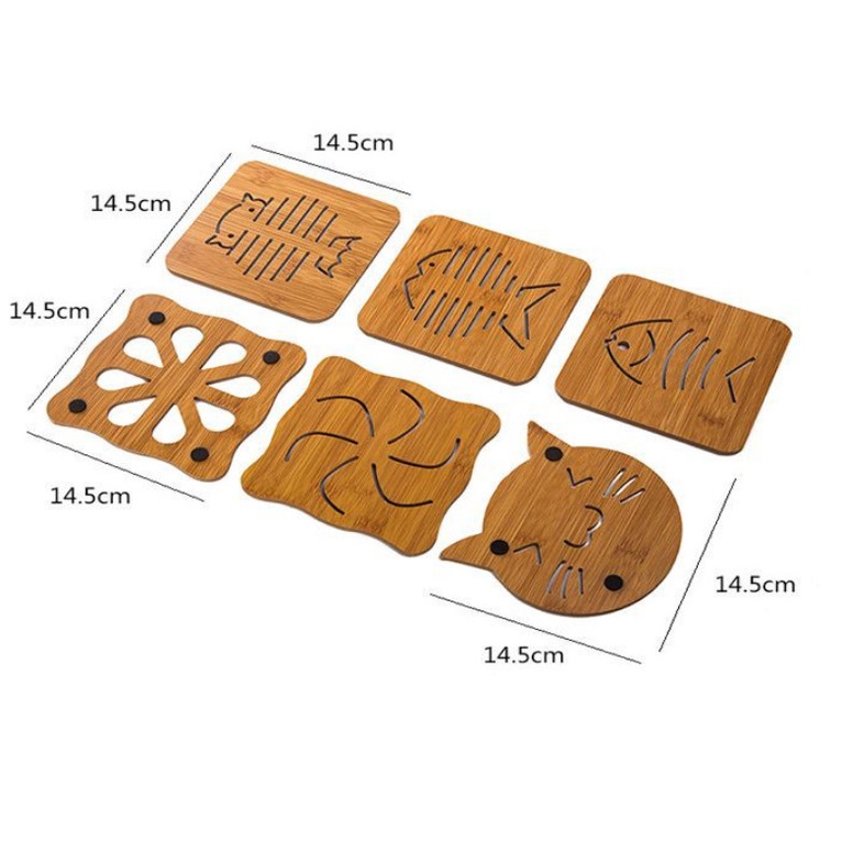 Với kích thước vuông, gọn, được khắc các họa tiết ngộ nghĩnh đẹp mắt, đế lót nồi bằng gỗ cũng là 1 vật dụng trang trí giúp cho bàn ăn của gia đình bạn thêm sinh động và lạ mắt.