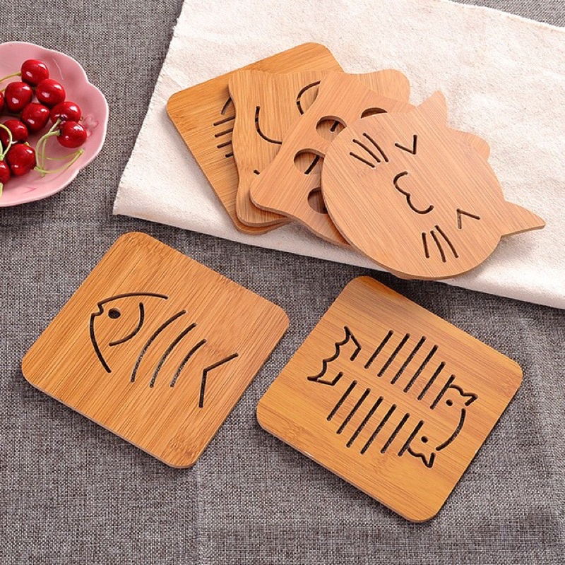 Miếng lót nồi - lót ly bằng gỗ nhiều hình trang trí bàn ăn sang trọng sạch sẽ