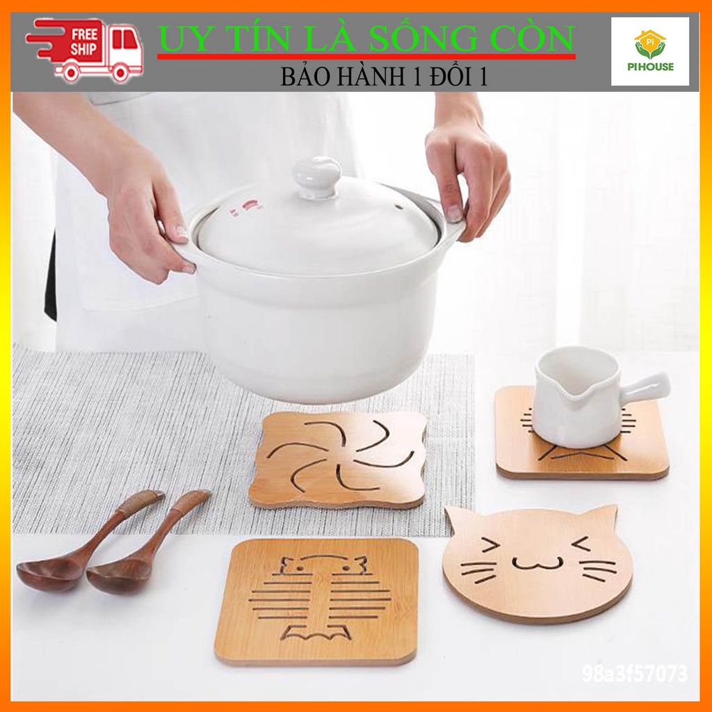 Miếng lót nồi ly cốc bằng gỗ cách nhiệt nhiều hình- Đế lót nồi bằng gỗ được gia công hoàn toàn bằng chất liệu gỗ tre gọn nhẹ, cứng cáp.