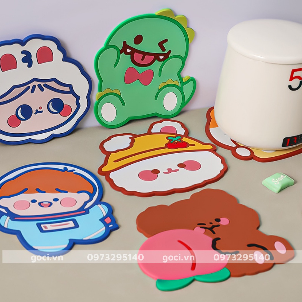 Miếng silicon lót ly cách nhiệt chống thấm nước chống trượt hoạt hình dễ thương