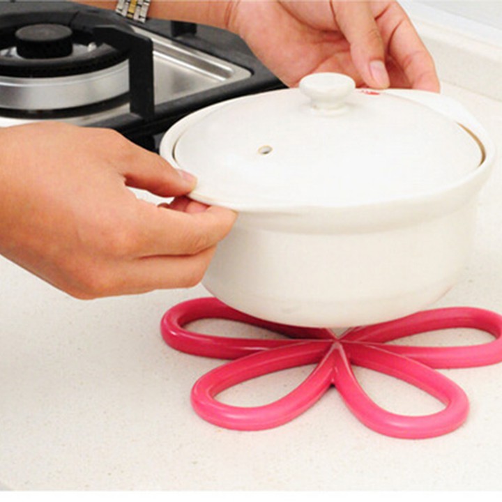 Giới thiệu Miếng lót nồi Silicon hình hoa mai đa chức năng chống dính chống trượt chịu nhiệt cao cấp trắng hồng xanh đen