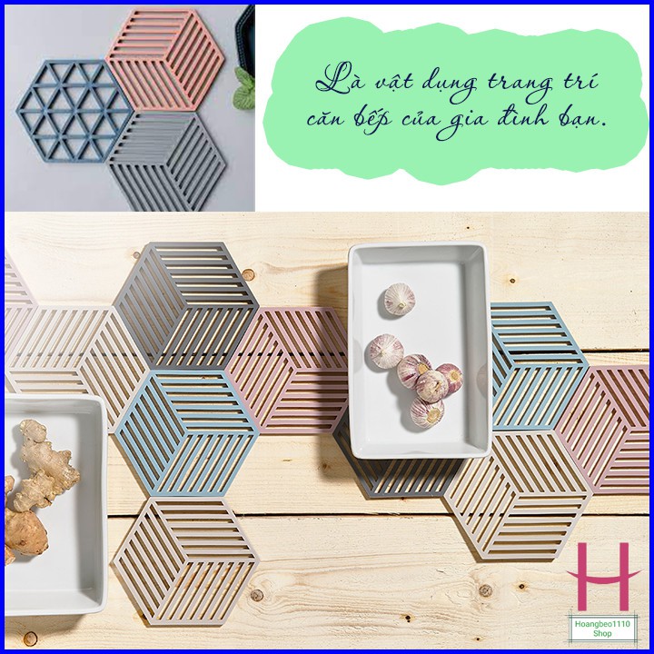 - Hiện nay, bạn đang gặp khó khăn và lo lắng về những vết bẩn và sức nóng mà xoong nồi có thể để lại trên bề mặt của bàn ăn, mặt đá,...làm chúng bị hỏng, bẩn, và gây mất thẩm mĩ góc bếp nhà bạn. Để giải quyết vấn đề trên, đã có Miếng lót nồi lục giác cực xinh xắn đây ạ..!!