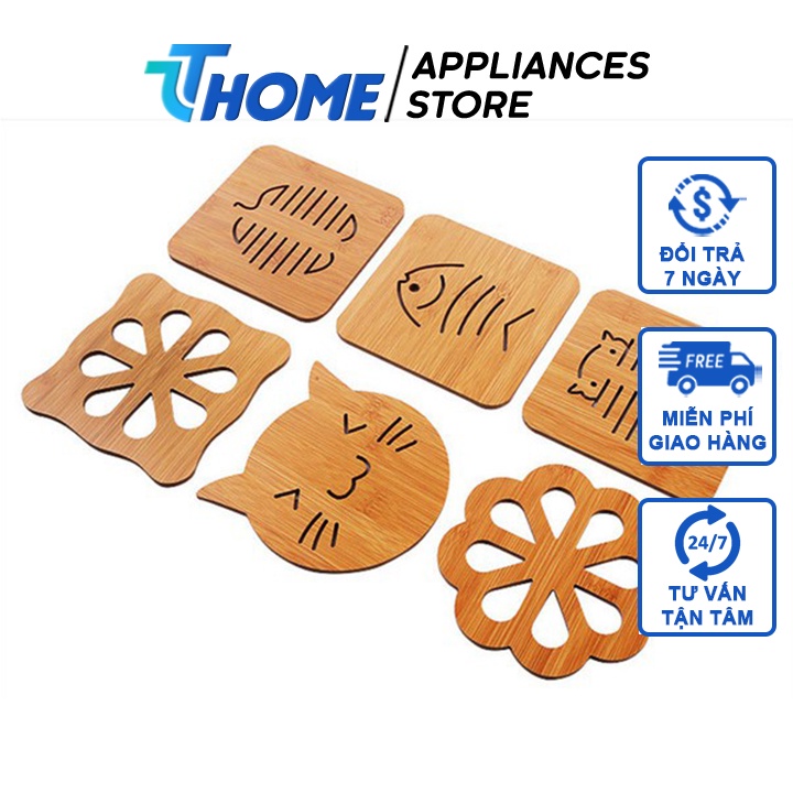 Nhà cửa & Đời sống > Bộ đồ bàn ăn > Khay, tấm lót bàn ăn || Miếng lót nồi, tấm lót cốc ly bằng tre thiết kế ngộ nghĩnh đáng yêu TT -HOMECòn hàng