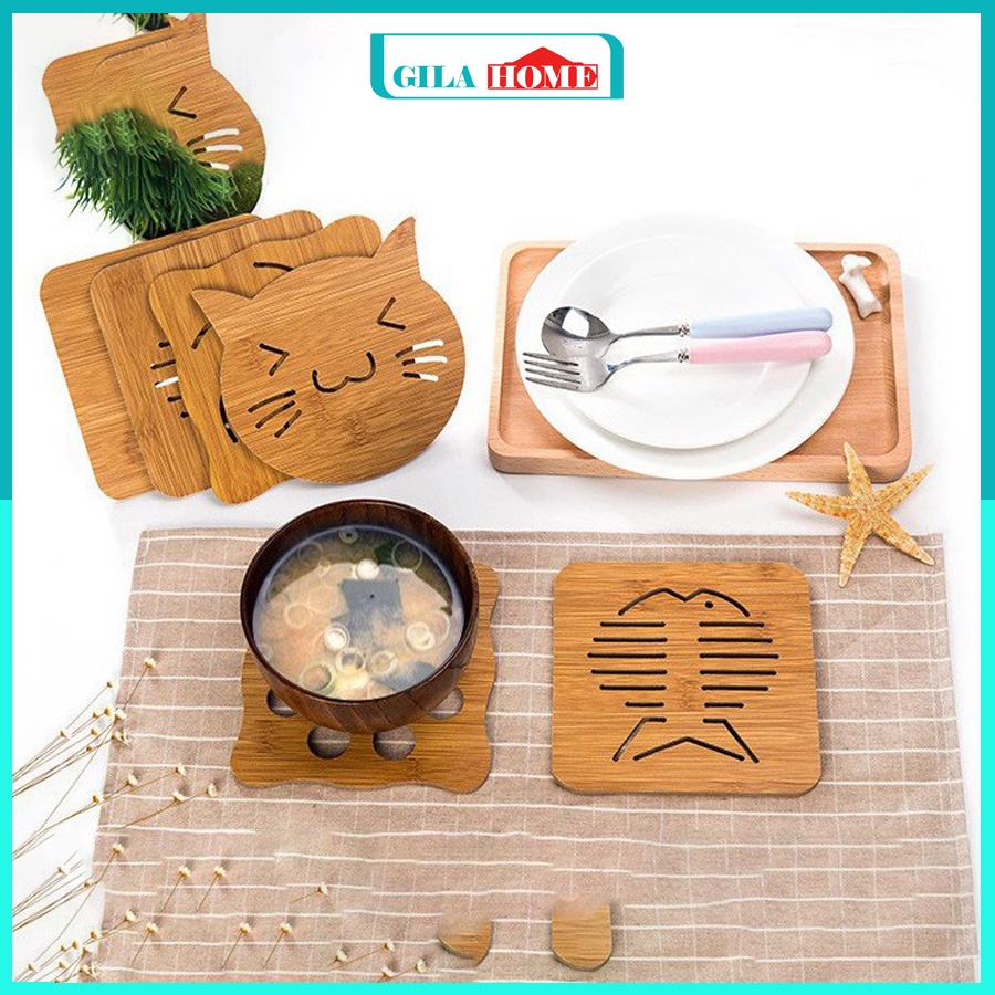 - MIẾNG LÓT NỒI làm bằng gỗ tre ngoài khả năng chịu nhiệt tốt, chúng còn được thiết kế với những hình ảnh vô cùng xinh xắn dễ thương