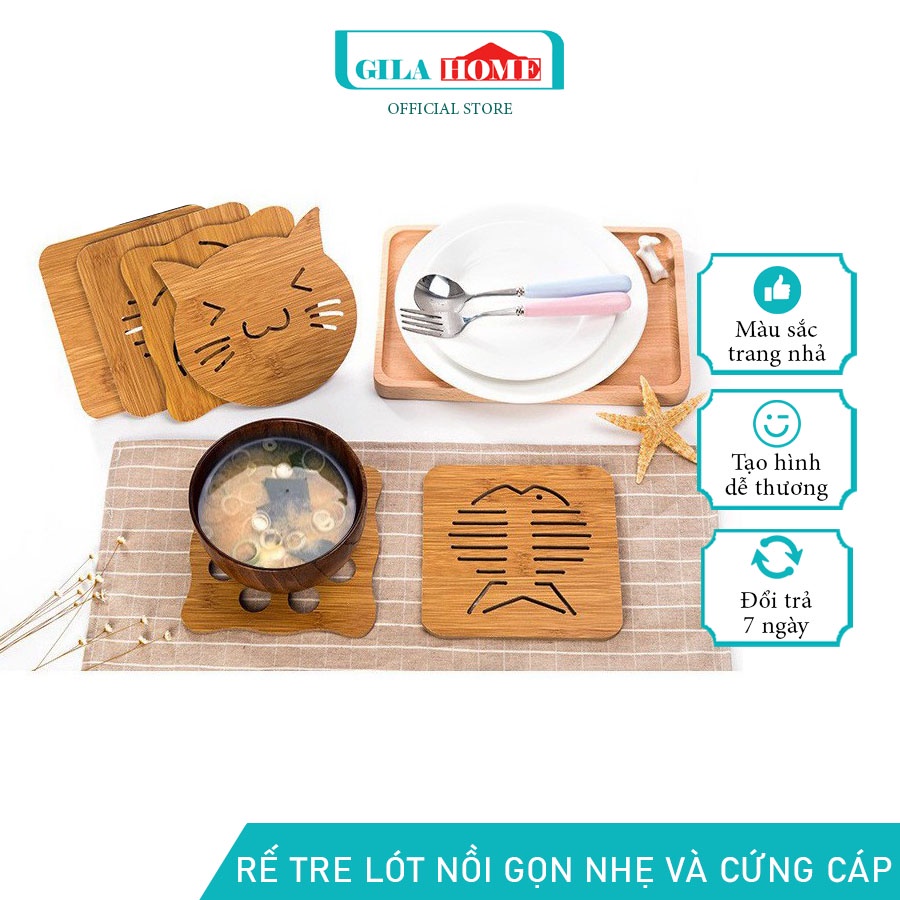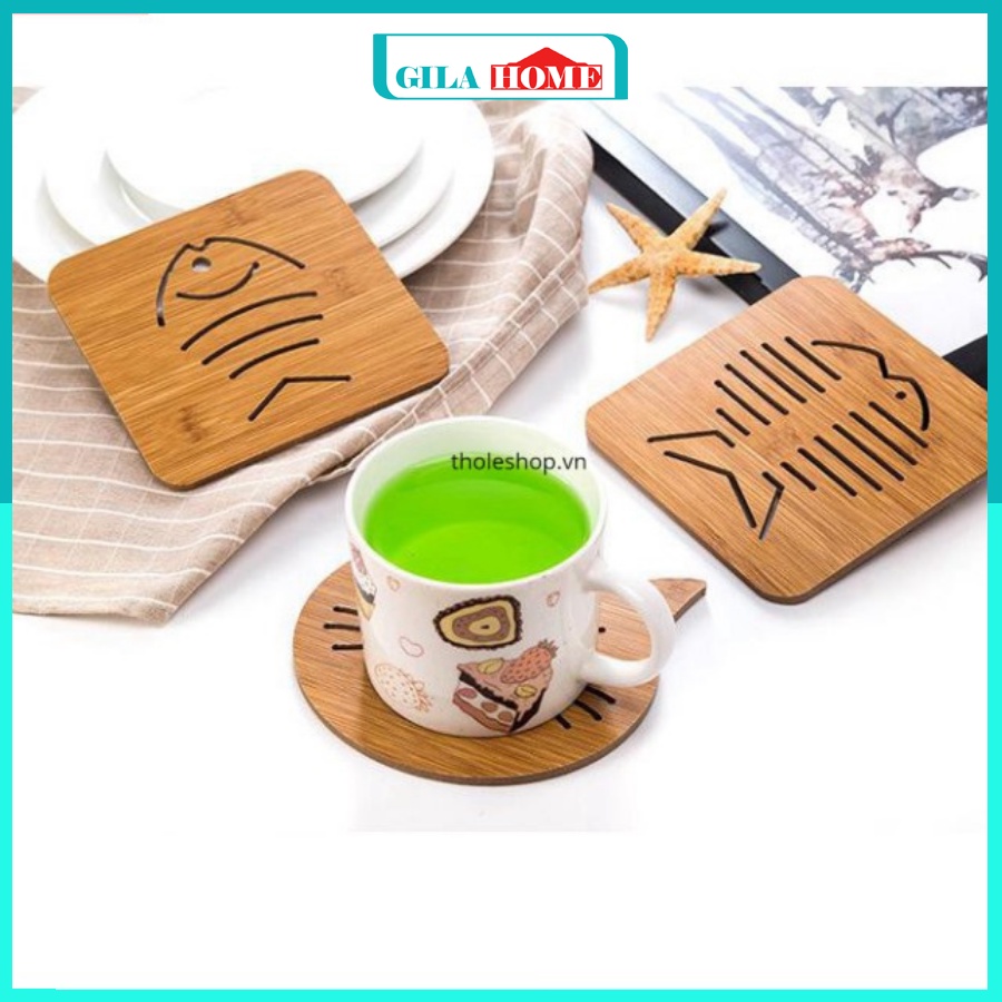 Nhà cửa & Đời sống > Bộ đồ bàn ăn > Khay, tấm lót bàn ăn || Miếng Lót Nồi Tiện Dụng GILA HOME Chất Liệu Gỗ Giúp Cho Gian Bếp Của Bạn Trở Nên Sang Trọng Kích Thước 15 x 15 cmCòn hàng