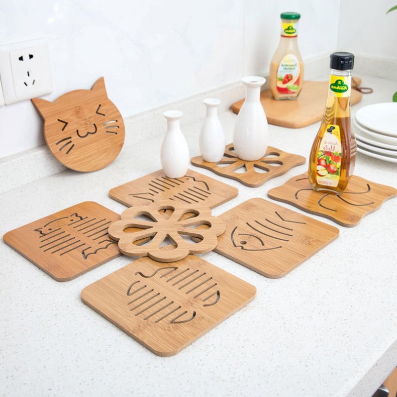 Sản phẩm dùng để lót xoong, nồi, chảo, bát đĩa, cốc chén … được làm bằng gỗ giúp cách nhiệt giữa xoong, nồi và mặt bàn hay tủ đựng thức ăn hiệu quả.