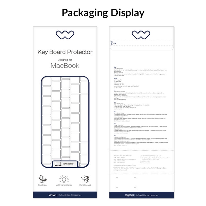 - Ngoài ra lót phím WIWU còn sử dụng vật liệu TPU nhập khẩu thân thiện với môi trường, không độc hại, chống mài mòn, chống dầu, truyền ánh sáng, thông thoáng khí và co giãn tốt.