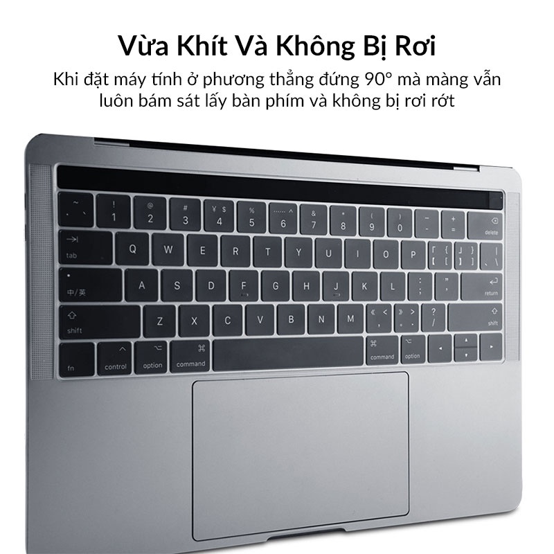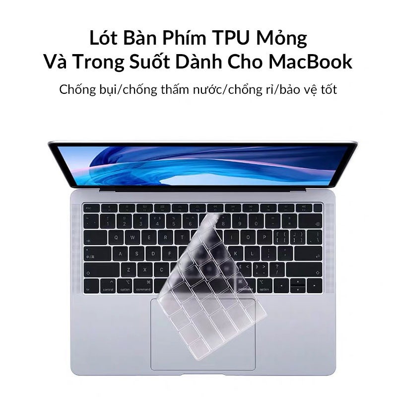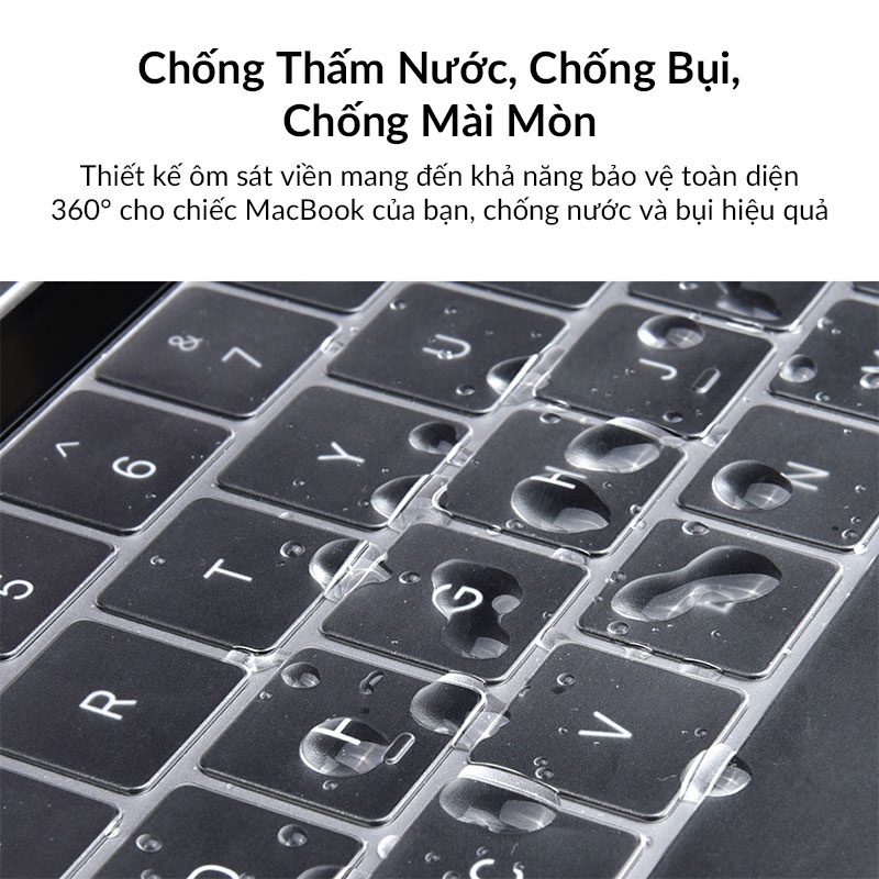 - Lót bàn phím MacBook Pro chống thấm nước, chống bụi, chống mài mòn một cách hiệu quả, thiết kế ôm sát viền mang đến khả năng bảo vệ toàn diện 360° cho chiêc MacBook của bạn.