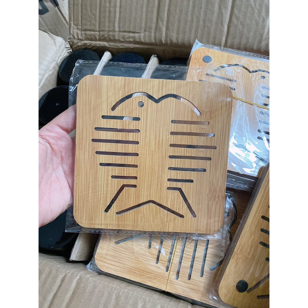 Miếng Lót xoong Nồi Bằng Gỗ Cách Nhiệt chất liệu gỗ tre gọn nhẹ , cứng cáp siêu dễ thương