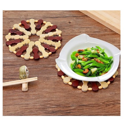 MIẾNG LÓT XOONG NỒI GỖ TRÚC SANG TRỌNGMiếng lót nồi hạt gỗ trúc kết xinh xắn góp phần làm đẹp không gian bếp, bàn ăn.