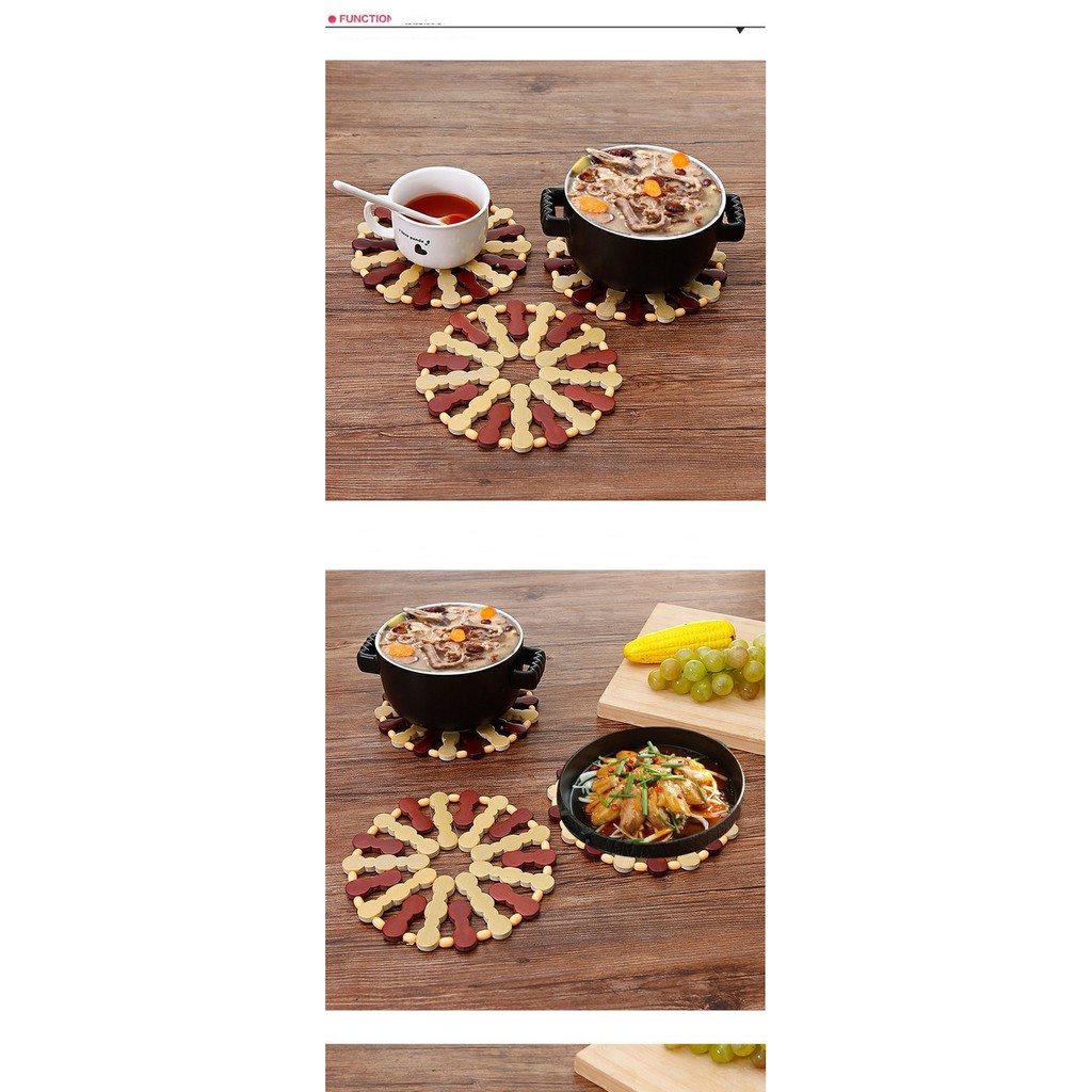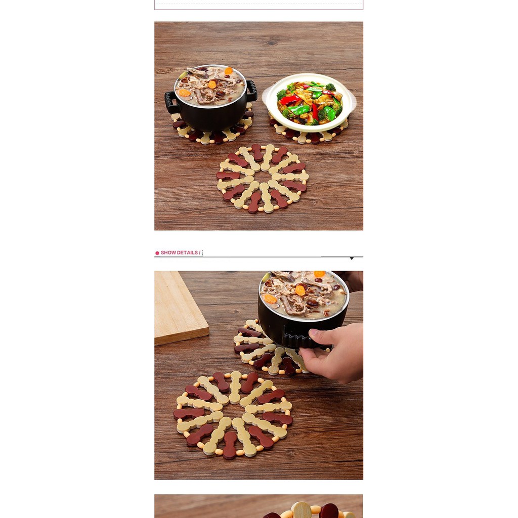 MIẾNG LÓT XOONG NỒI GỖ TRÚC SANG TRỌNG🔸 Miếng lót nồi hạt gỗ trúc kết xinh xắn góp phần làm đẹp không gian bếp, bàn ăn.