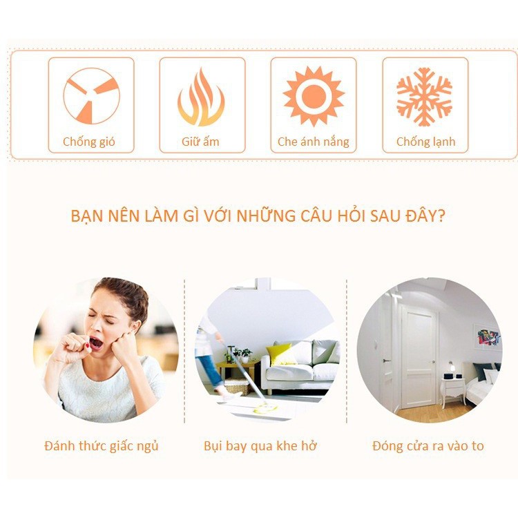Hướng dẫn sử dụng: Lau sạch bụi nơi khe cửa cần dán. Vừa tháo lớp phim bên dưới, vừa dán dọc theo khe hở.
