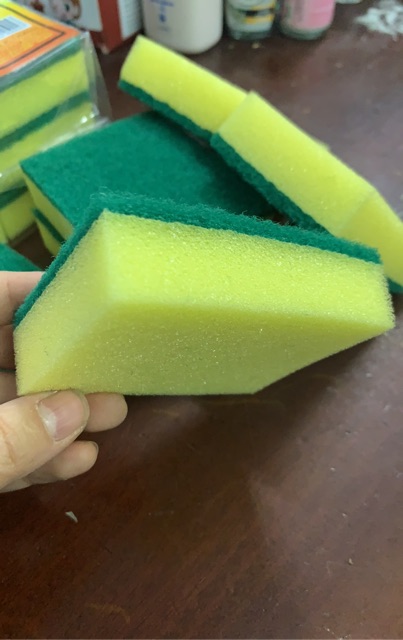 Miếng cọ rửa chén bát xanh vàng tiện dụng - Miếng bọt biển cọ rửa xoong nồi- Sản phẩm : miếng cọ rửa chén.