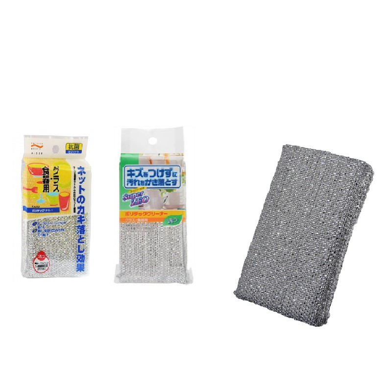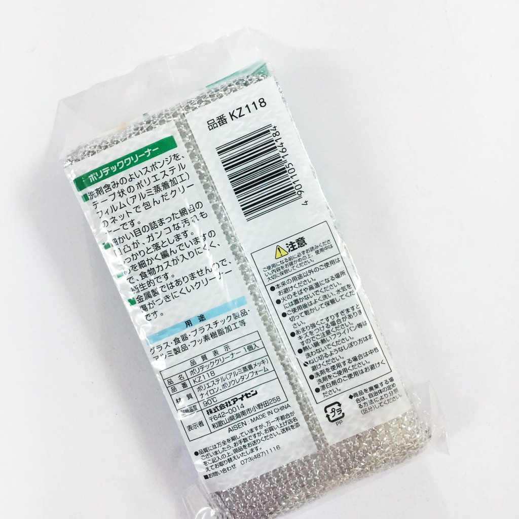 Nhà cửa & Đời sống > Dụng cụ chăm sóc nhà cửa > Miếng bọt biển, miếng chà vệ sinh || Miếng mút rửa ly chén Aisen Nhật Bản Poly-Tech KZ118 (Bạc)Còn hàng