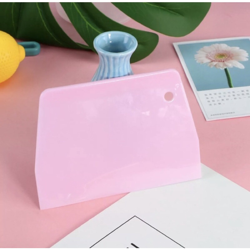 Miếng nhựa cắt vét bột hình vuông màu hồng pastelDùng để cắt bột, vét bột trong quá trình làm bánh