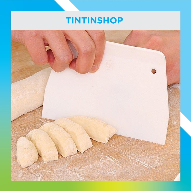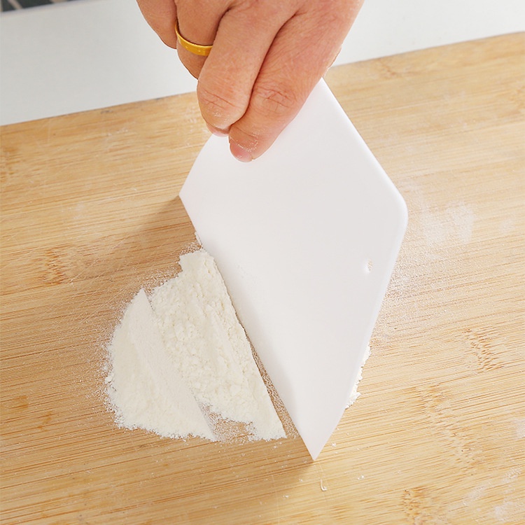 - Miếng cắt và vét bột bằng nhựa là dụng cụ giúp bạn cắt những miếng bột dễ dàng hơn, không cần phải làm đứt liên kết của bột bằng cách cấu véo và vét bột trên bàn hoặc dính vào các dụng cụ sạch sẽ hơn