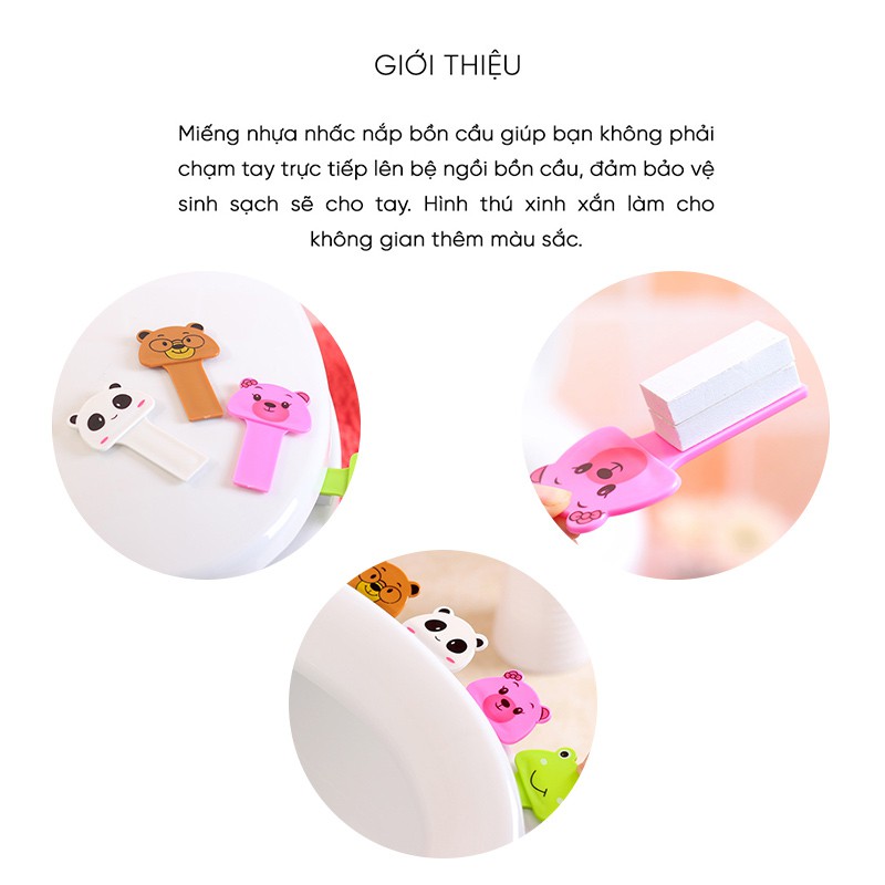 1. Giới thiệu sản phẩm:Miếng nhựa nhấc nắp bồn cầu giúp bạn không phải chạm tay trực tiếp lên bệ ngồi bồn cầu, đảm bảo vệ sinh sạch sẽ cho tay. Hình thú xinh xắn làm cho không gian thêm màu sắc.
