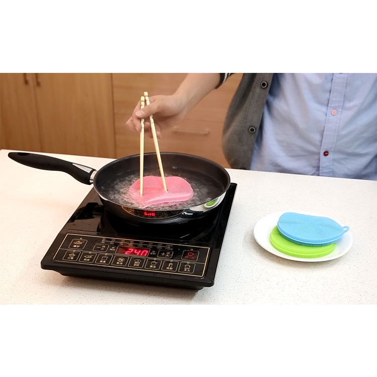 CHI TIẾT SẢN PHẨM:- Được thiết kế bởi các hạt sần trên bề mặt có tác dụng đánh bay các vết bẩn, bám cặn trên xoong nồi mà không ảnh hưởng tới bề mặt chống dính. Với chất liệu Silicone làm cho miếng rửa sạch sẽ hơn sau mỗi lần sử dụng.