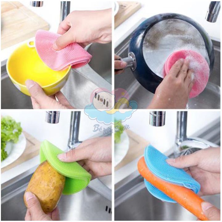 ➖ Miếng rửa chén, bát Silicon siêu bền, mềm mại, dùng cả năm cũng không bị vụn ra như miếng mút hoặc đổi màu như miếng lưới.
