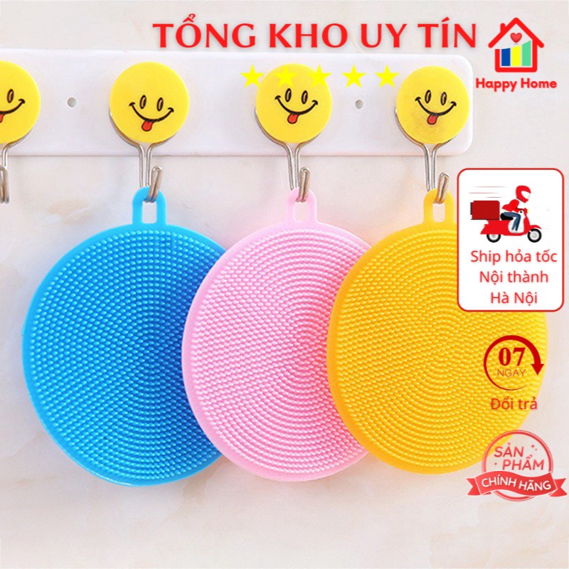 Miếng rửa bát silicon, Miếng rửa chén có quai treo thông minh Happy Home