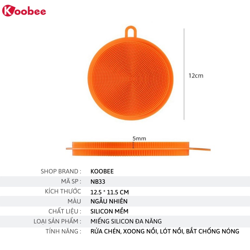 Nhà cửa & Đời sống > Dụng cụ chăm sóc nhà cửa > Miếng bọt biển, miếng chà vệ sinh || Miếng rửa bát Silicon, rửa rau củ, mở nắp chai lọ lót nồi, găng tay nhấc xoong nồi nóng KooBee (NB33)Còn hàng