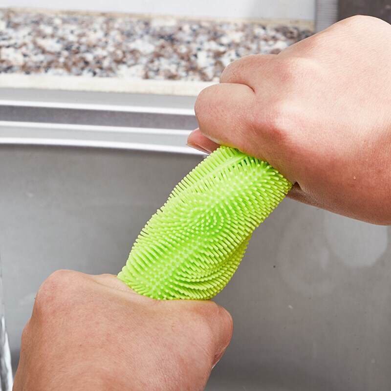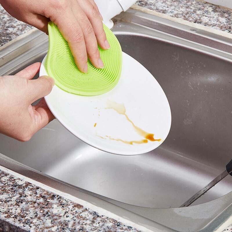 Được kiểu dáng bởi các hạt sần trên bề mặt mang tác dụng đánh bay những vết bẩn, bám cặn trên xoong nồi mà không tác động tới bề mặt chống dính.với chất liệu silicon khiến cho miếng rửa sạch sẽ hơn sau mỗi lần dùng.