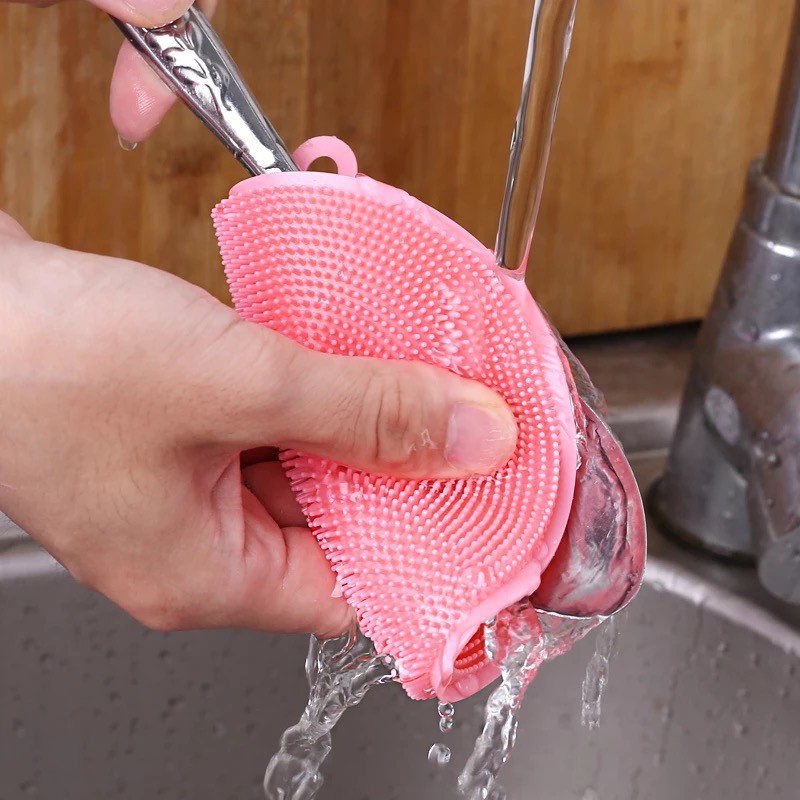 Miếng rửa chén, bát đĩa bằng chất liệu silicon có móc treo tiện lợi dành cho Gen YZ chăm chỉ