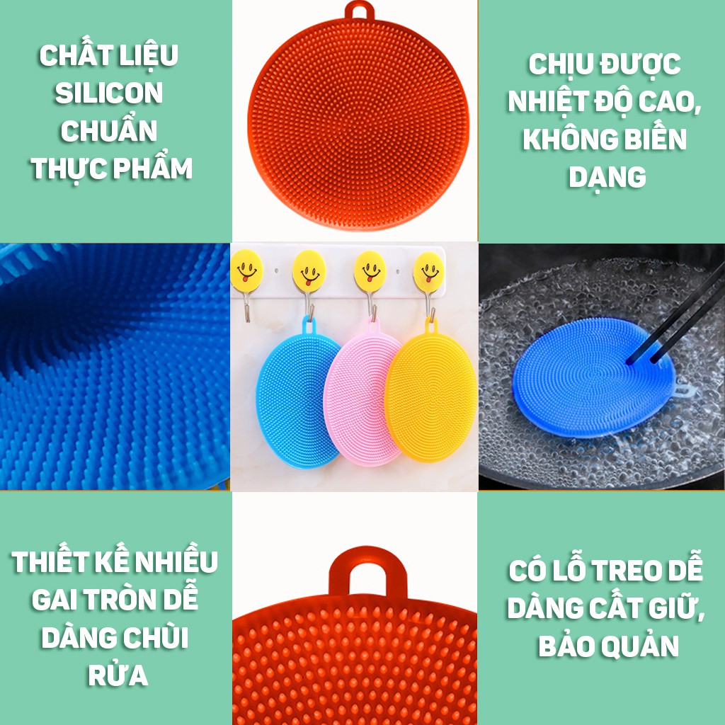 Miếng rửa chén bát silicon sẽ giúp bạn loại bỏ nổi lo lắng bị trầy xước khi rửa những đồ dùng chống dính. Ngoài dùng để rửa chén, sản phẩm còn có nhiều chức năng khác như dùng để lót ly, bắc xoong nồi, rửa rau củ,...1. THÔNG TIN CHUNG: