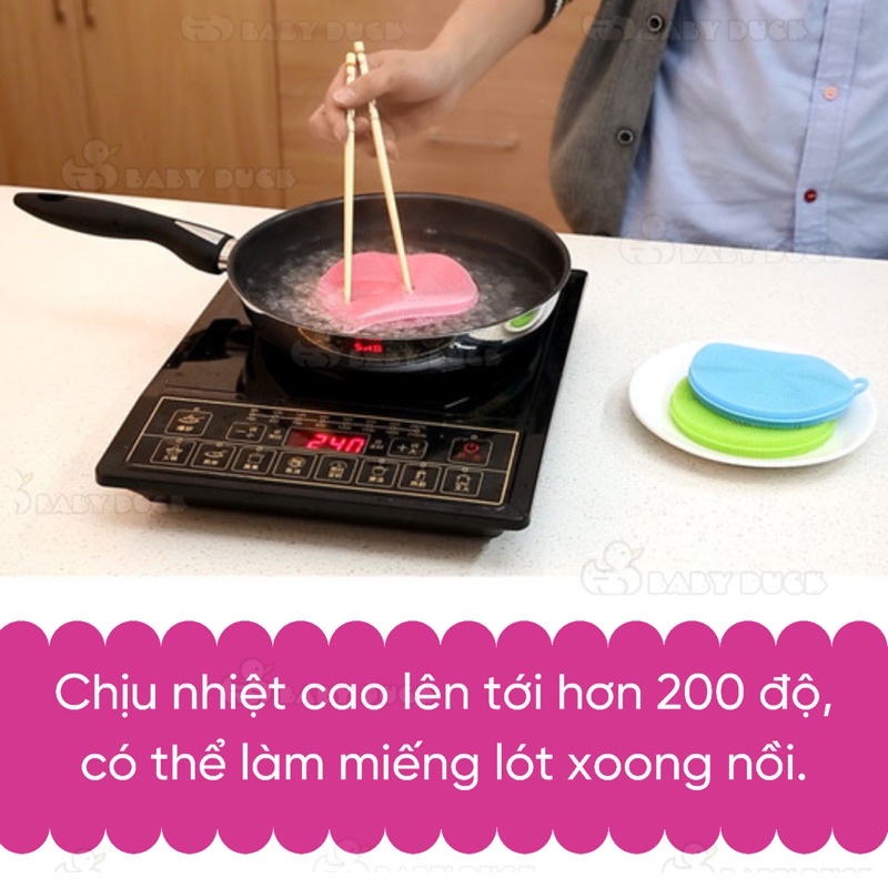 Thay cho những miếng mút ngâm nước 1 thời gian bị mủn, bị mất độ đàn hồi bằng các miếng silicon dai, dễ dàng vệ sinh và khô ráo nhanh, sẽ đem lại cho việc vệ sinh chén bát đơn giản hơn.