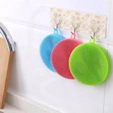 Miếng rửa bát silicon có quai treoMiếng rửa bát silicon có quai treo làm sạch những vết bẩn bất trị nhất trên xoong nồi, trả lại độ bóng cho vật dụng.