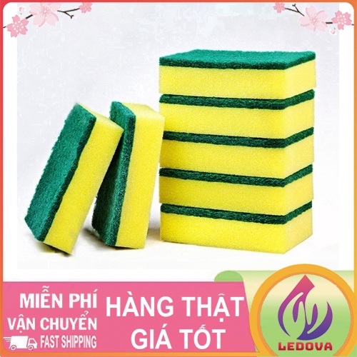 - Miếng cọ rửa chén bát xanh vàng có một mặt được gắn miếng làm ráp giúp đánh rửa xoong nồi, bồn rửa bát, mặt khác mềm giúp tạo bọt và rửa bát đĩa thông thường- Miếng cọ nhằm giúp đánh bật tất cả các vết bẩn cứng đầu bám lại trên vật dụng nhà bếp của bạn.
