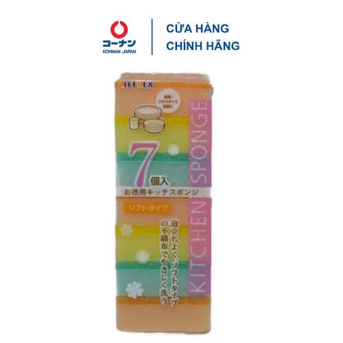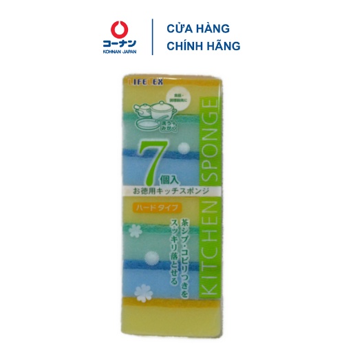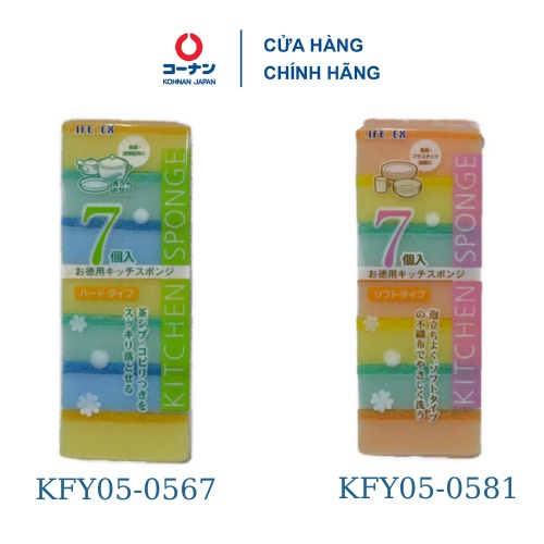 Tên sản phẩm: Miếng rửa chén bọt biển Nhật Bản KOHNAN KFY05-0567/0581 tẩy rửa đa năng gói 7 miếng