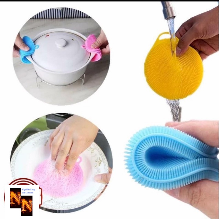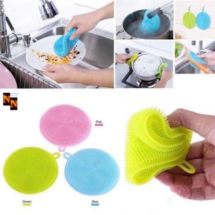 MIẾNG RỬA CHÉN DĨA ĐA NĂNG BẰNG SILICON CÁCH NHIẾT CÓ GAI TRÒN- Một miếng rửa chén dĩa đa năng với nhiều công dụng. Vừa làm miếng rửa bát vừa có tác dụng chà rửa trái cây lại kiêm ngay cái nhắc nồi cách nhiệt.