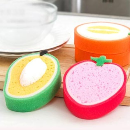 Miếng rửa chén hình trái cây.Kiểu dáng hình trái dâu , xoài , cam, táo